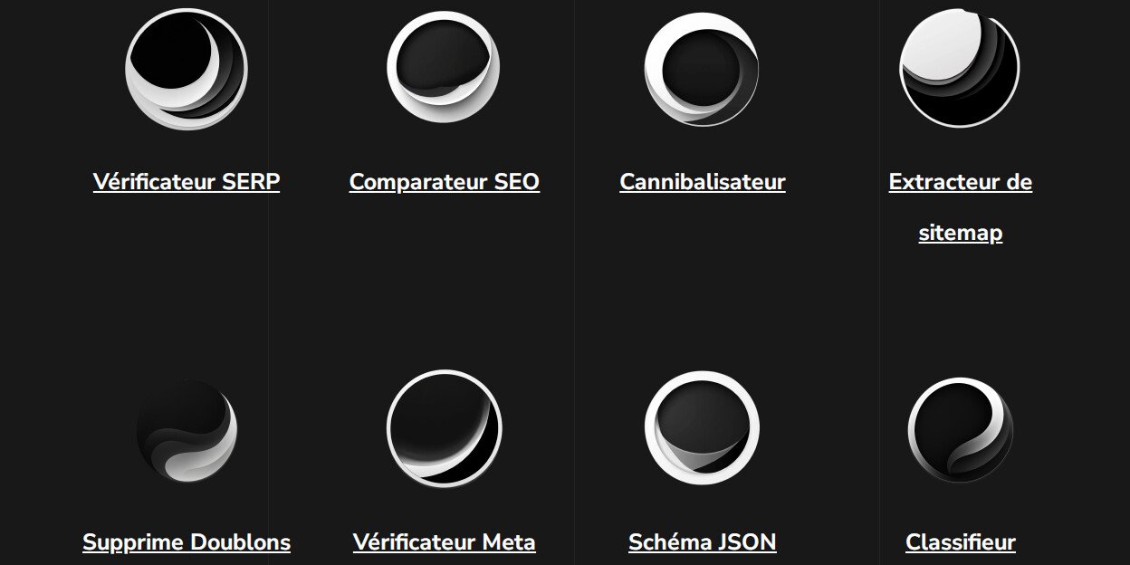 Feu SEO regroupe plusieurs outils en ligne, directement exploitables depuis le navigateur, sans abonnement. Parmi les plus utiles :